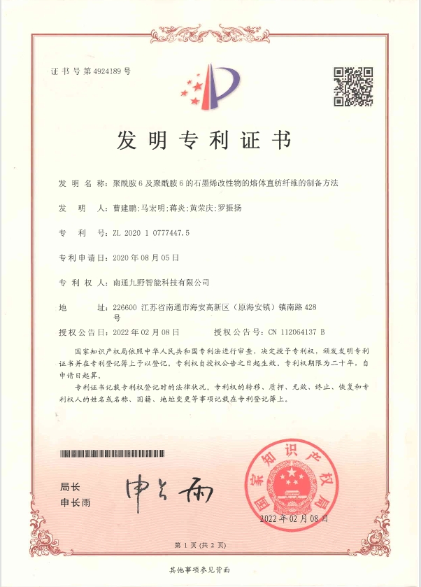 2020年8月5日,发明专利---《聚酰胺 6及聚酰胺 6的 石墨烯改性物的熔体直纺纤维的制备方法 、变更手续》